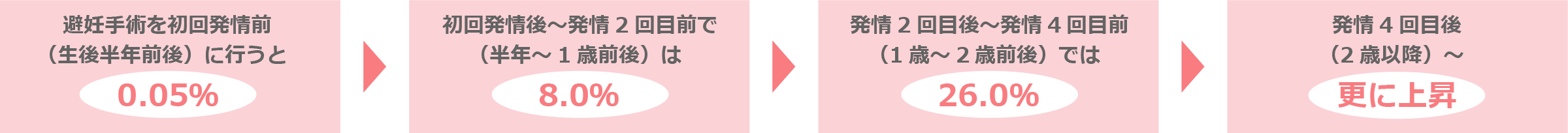 | 予防できる病気 | ・卵巣子宮疾患(子宮蓄膿症・子宮内膜炎・子宮脱・卵巣腫瘍)・出産に伴う産科疾患・持続性発情など |