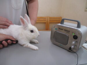 ちなみにウサギの健診では、いつもドプラ(ゼリーの塗布が必要)をマイクで拡張させて聞いてもらっています。