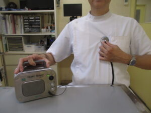さて、どうしようかと思案しましたが、獣医師会から拡大心音計を借りることを思いつきました!