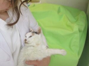 また、前足で顔を洗うことが苦手だったので、毎日目薬を差して拭いていました。